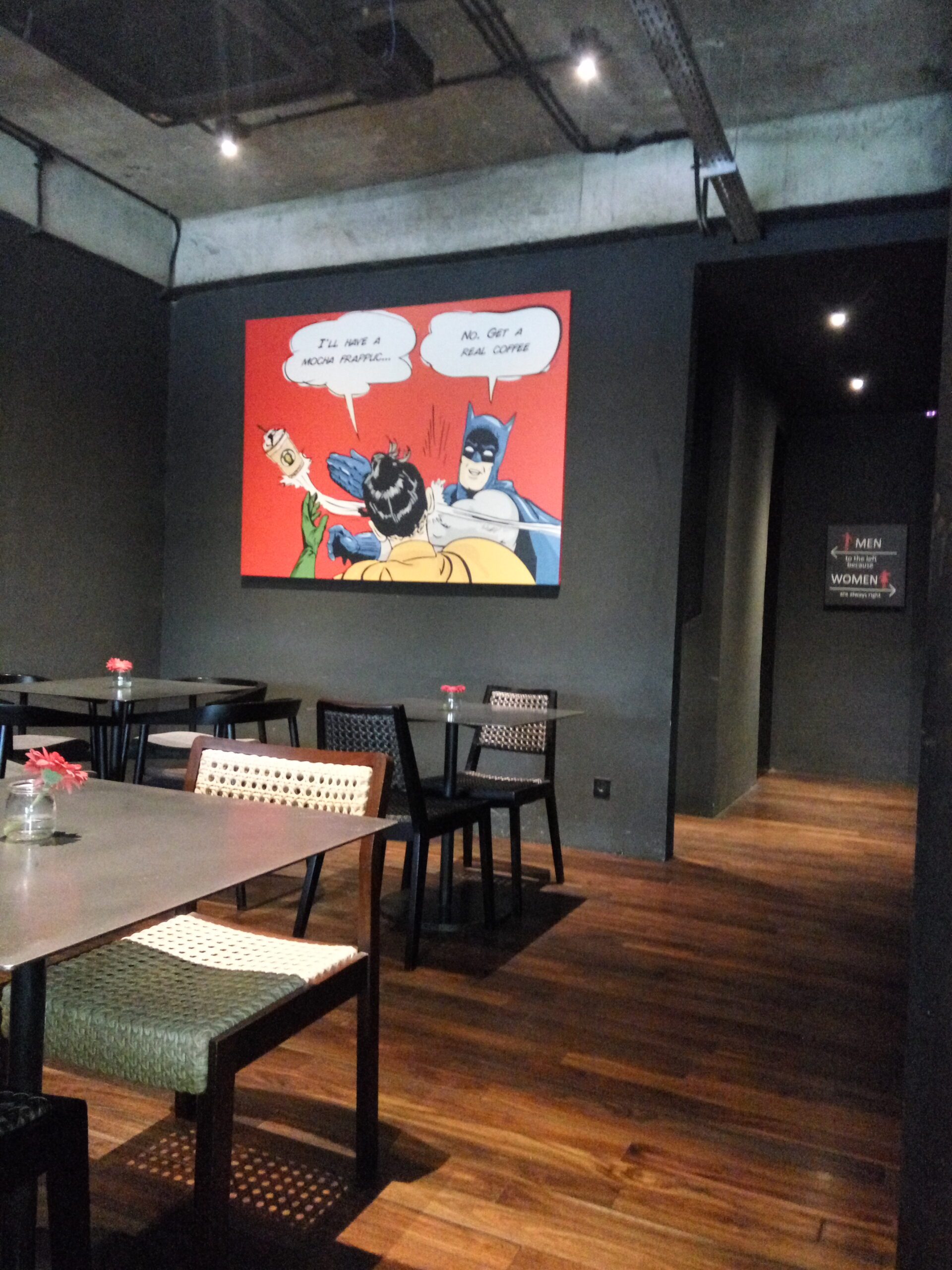 Ternyata tak mudah mendapatkan spot kosong di coffee shop ini. Di ujung meja bar tempat saya duduk beberapa pegawai kantoran sedang meeting. Di sudut ruang berdekatan dengan tangga beberapa orang sedang wawancara kerja dengan laptop masing-masing di depannya. Bersebelahan dengan mereka, menyatukan beberapa meja kotak, segerombolan ibu muda pun sibuk arisan, belum lagi di tengah-tengah ruang, pada meja-meja bundar remaja putri sibuk bercakap tentang tren kosmetik terbaru. Itulah gambaran fungsi coffee shop saat ini. Pengunjung yang datang tak hanya sekedar menikmati berbagai kopi yang tersedia, namun datang dengan berbagai aktivitas yang menyertainya seperti meeting, arisan, atau sekedar hang out.